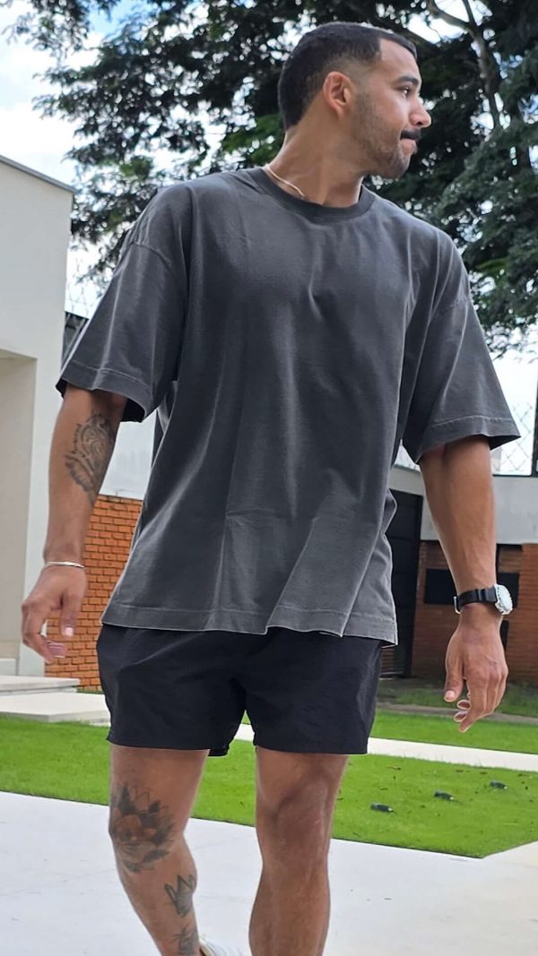 A Camiseta Liberty Oversized Chumbo desenvolvida em 100% algodão com modelagem quadrada e oversized, que proporciona um ajuste solto e moderno. O comprimento é levemente mais curto devido ao corte boxy, garantindo um caimento único e descolado.