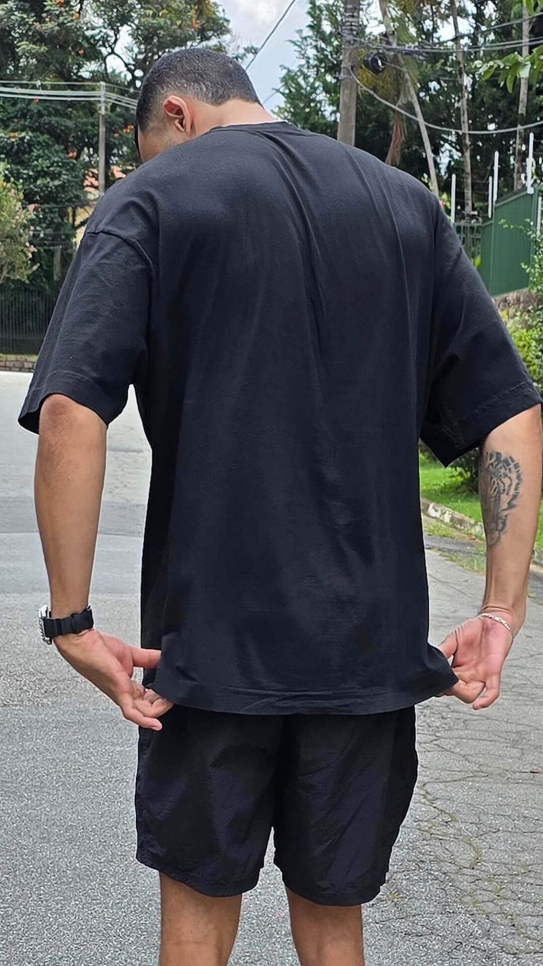 A Camiseta Liberty Oversized na cor Preta é desenvolvida em 100% algodão com modelagem quadrada e oversized, que proporciona um ajuste solto e moderno. O comprimento é levemente mais curto devido ao corte boxy, garantindo um caimento único e descolado.